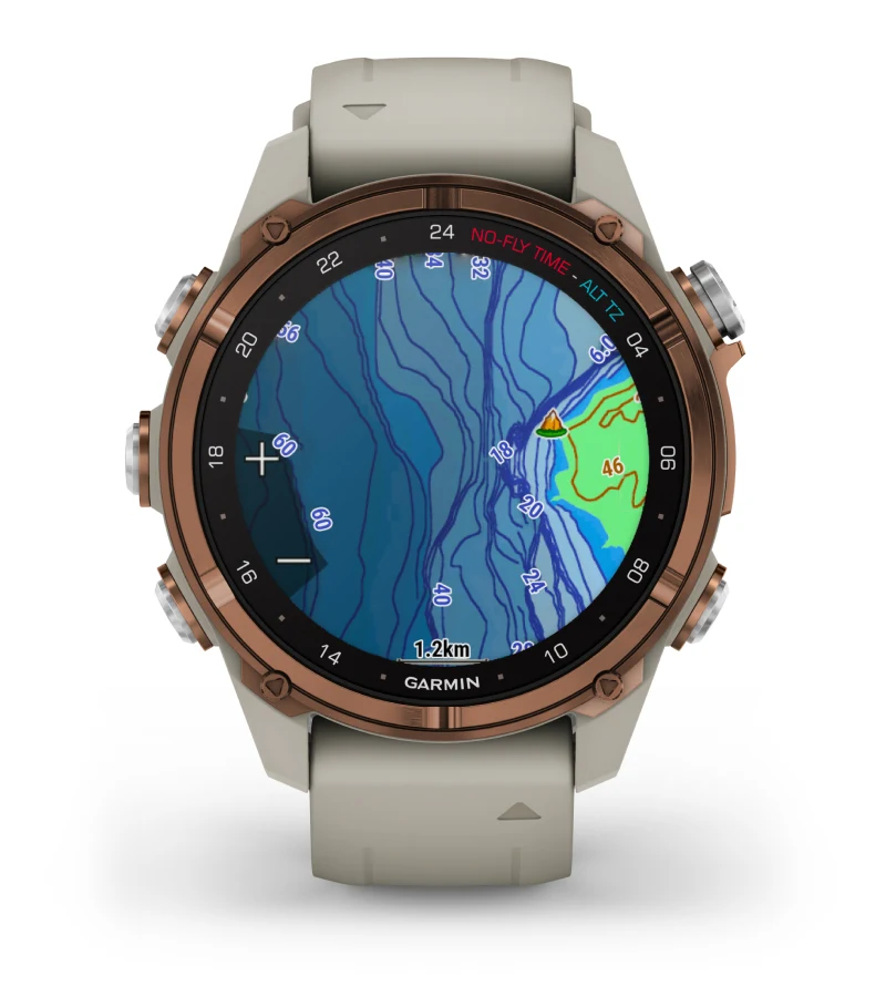 Цветные карты на запястье отображают батиметрические контуры и более 4000 мест для погружения, помогая вам находить новые места и ориентироваться в них.